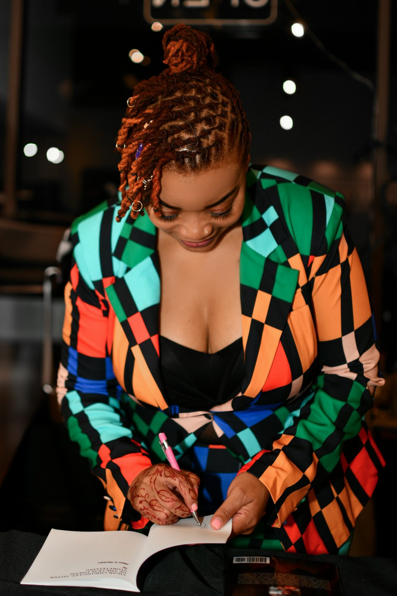 She poetically pens it.